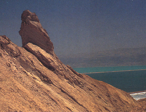 At the Dead Sea they will tell you that this is "Lot's Wife." She is 60 feet high and made of salt -- or "covered" with salt.